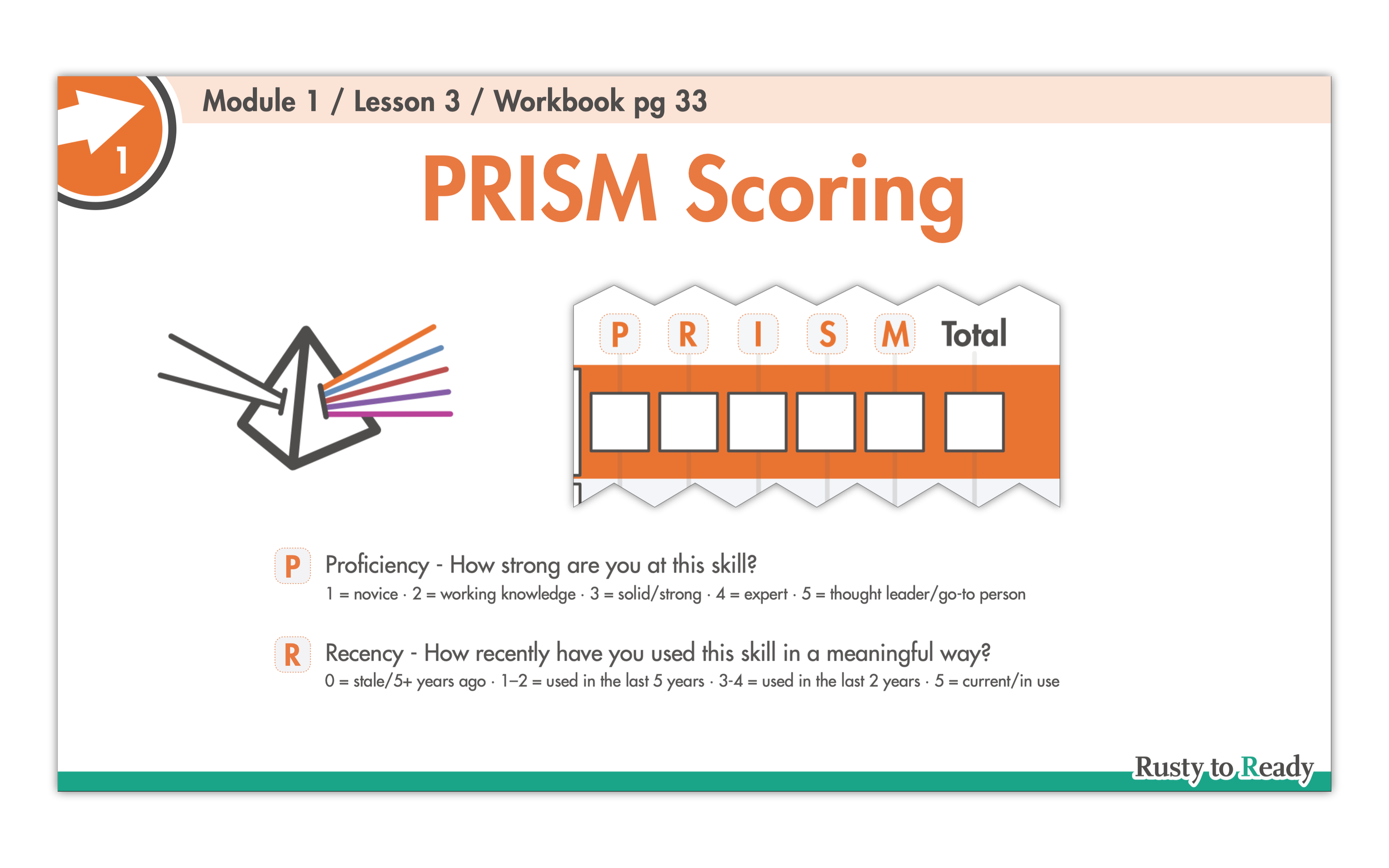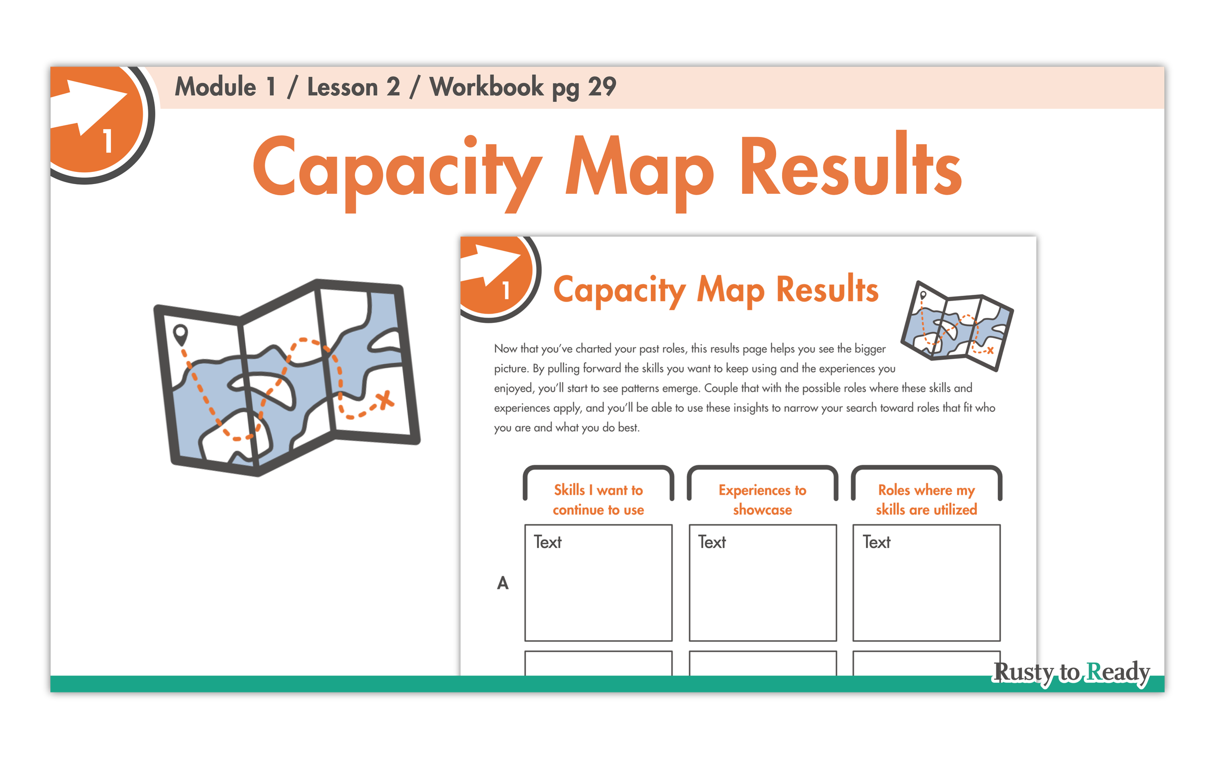 Then you turn that clarity into power. In Lesson 2, you build a focused inventory of your strengths and experience. The Capacity Map and Skills Matrix surface the skills you want to use again, the patterns you may have missed, and the evidence that proves your value. This is the raw material for strong interview answers.